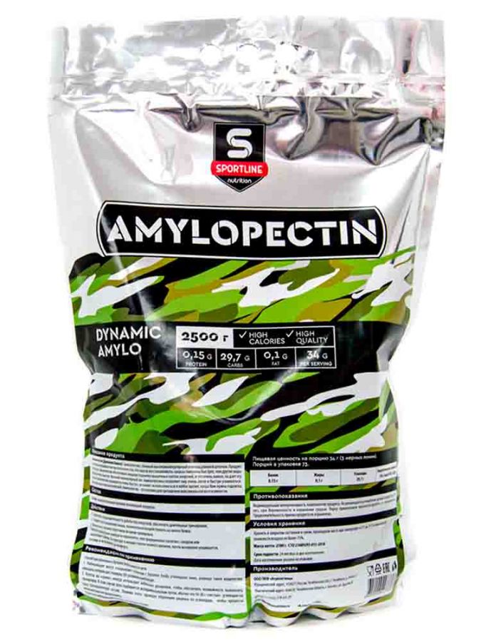 Амилопектин (ДинамикАмило) - амилопектин, сложный высокомолекулярный углевод длинной цепочки. Продукт с высокой калорийностью высокого качества. Его задача восстанавливать запасы гликогена быстрее, чем другие виды углеводов. Амилопектин обеспечивает мощную подпитку мышечных клеток энергией, и что очень важно, он дает эту энергию очень быстро. Высокий молекулярный вес Амилопектина позволяет ему очень легко и быстро усваиваться. Так как Амилопектин усваивается очень быстро, он может использоваться в любое время, когда Вам нужна подпитка быстрой и качественной энергией. Амилопектин - это топливо для тренировок максимальной интенсивности.